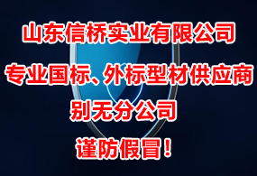 山東信橋?qū)崢I(yè)有限公司成立于1994年8月8日,是解決業(yè)內(nèi)高端國標(biāo)、外標(biāo)型材需求的現(xiàn)貨服務(wù)商,為型材的升級換代提供可能。公司一直秉承“誠信為本,客戶至上”和“專人、專業(yè)、專心,做精、做細(xì)、做透”的經(jīng)營理念,認(rèn)真貫徹落實“經(jīng)營多元化、管理現(xiàn)代化、信橋品牌化、員工知識化”四大戰(zhàn)略,為廣大客戶提供優(yōu)質(zhì)的產(chǎn)品和服務(wù);